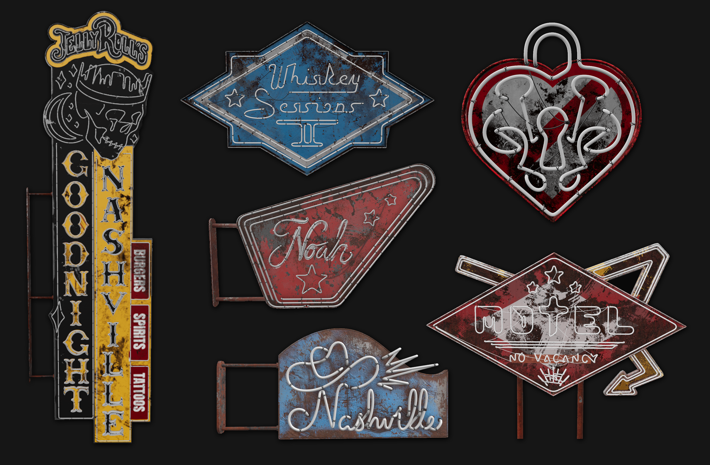Graphic design, layout, texturing, and gas station neon visuals for Stagecoach and 2025 tour